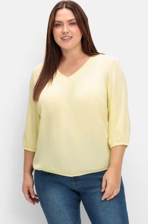 Große Größen: Crêpe-Tunika mit Zierknopfleiste und Stretchbündchen, hellgelb, Gr.40-54
