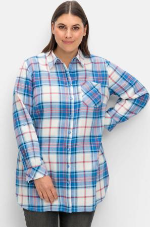 Große Größen: Karierte Longbluse mit Krempelfunktion, offwhite kariert, Gr.40-60