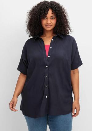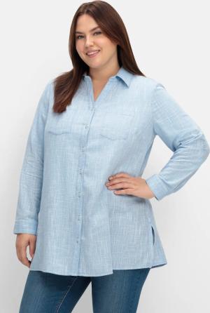 Große Größen: Lange Bluse mit Krempelärmeln, in Leinenoptik, blau, Gr.40-60