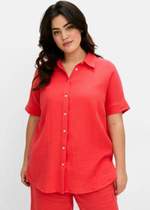 Große Größen: Kurzärmlige Hemdbluse aus Musselin, hummer, Gr.40-58