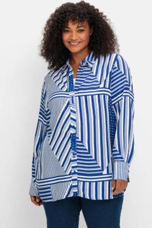 Große Größen: Langarmbluse im Mustermix mit Hemdkragen, blau gemustert, Gr.42-54