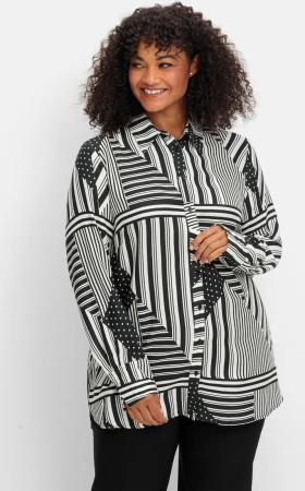 Große Größen: Langarmbluse im Mustermix mit Hemdkragen, schwarz gemustert, Gr.40-54