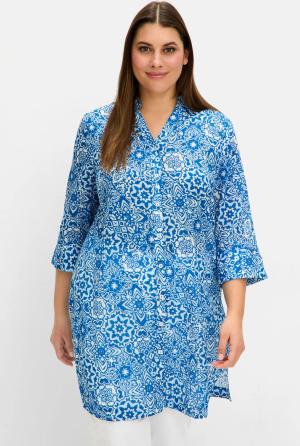 Große Größen: Longbluse mit Blätterdruck und 3/4-Ärmeln, kobalt gemustert, Gr.40-58