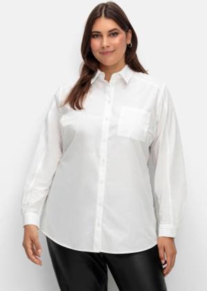 Große Größen: Hemdbluse mit Krempelärmeln, in leichter A-Linie, weiß, Gr.40-60
