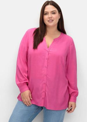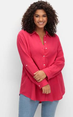 Große Größen: Musselin-Bluse mit Hemdkragen und Krempelärmeln, magenta, Gr.40-60