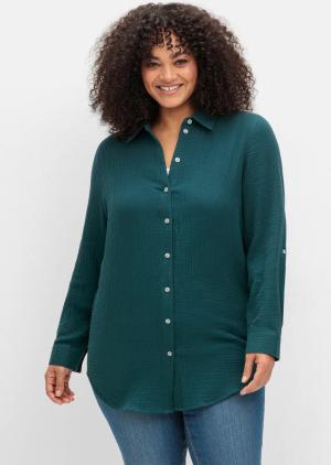 Große Größen: Musselin-Bluse mit Hemdkragen und Krempelärmeln, petrol, Gr.40-58