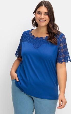 Große Größen: Shirt mit transparentem Spitzenbesatz, royalblau, Gr.40-56