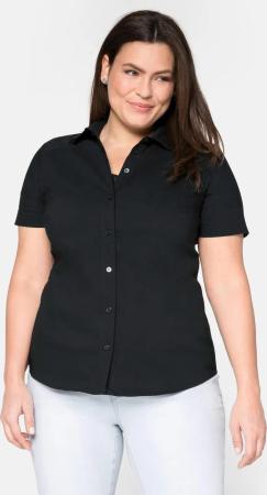Große Größen: Stretch-Bluse mit kurzem Arm, leicht tailliert, schwarz, Gr.40-60