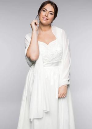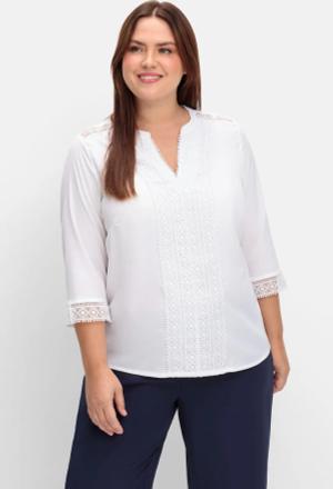 Große Größen: Tunika aus Crêpe, mit Spitzenbesatz, weiß, Gr.40-56