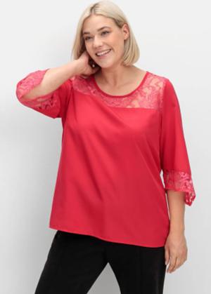 Große Größen: Tunika mit Spitze und Trompetenärmeln, rot, Gr.40-56