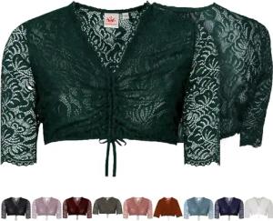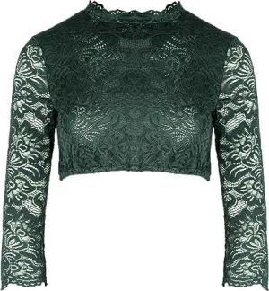 Dirndlbluse Ansbach | Damen Dirndl-Bluse mit V-Ausschnitt | Spitze Kurzarm dunkelgrün 48