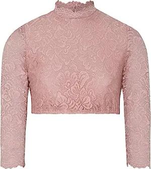 Dirndlbluse Ansbach | Damen Dirndl-Bluse mit V-Ausschnitt | Spitze Kurzarm rosa 50