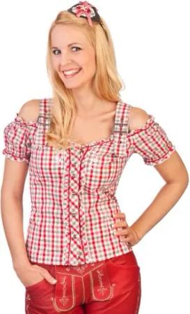 Trachten Bluse - PILLA - rot, grün, Größe 32