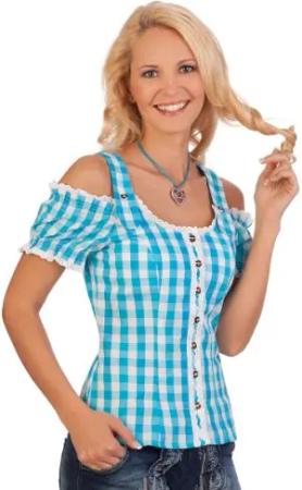 Trachten Bluse im Carmenstil - Traum - blau, grün, rot, Petrol, Größe 32