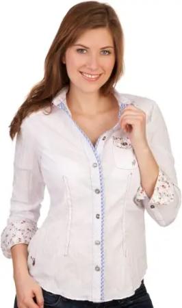 Trachten Bluse im sportlichen Style - NITZ - weiß/hellblau, Größe 32