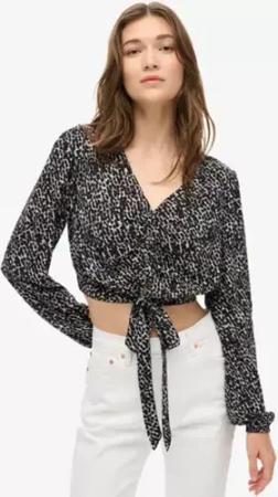 Superdry Damen Bindesaum-oberteil im Vintage-look Schwarz - Größe: 42