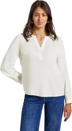 Damen A345200 Buttoned Roundneck Blouse W Gathering Uni, Off White, 38 EU, Off White, 38