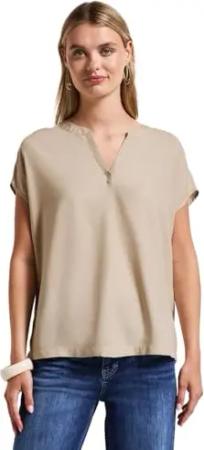 QR Shirtblouse w Splitneck Uni Coastal beige 36