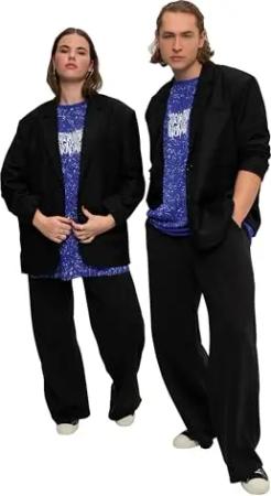 Damen große Größen Übergrößen Plus Size Blazer, Oversized, Rücken-Knopfleiste, Revers, Langarm, Unisex schwarz XL 828771100-XL