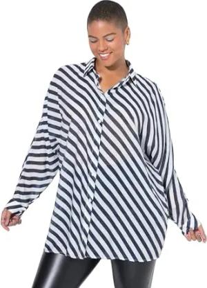 Damen große Größen Übergrößen Plus Size Hemd, leicht transparent, Streifen, Fledermausärmel dunkel blau 58+ 842392741-58+
