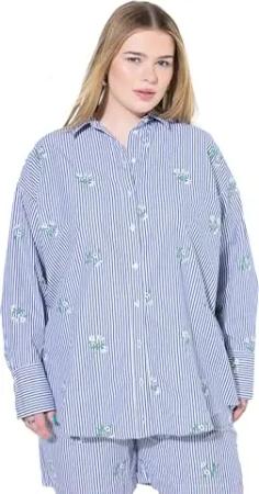 Damen große Größen Übergrößen Plus Size Hemd, Oversized, Streifen, Flower-Stickerei kornblumenblau 42+ 841665744-42+