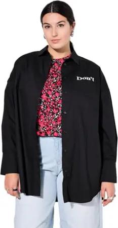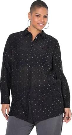 Damen große Größen Übergrößen Plus Size Hemdbluse, Boxy Shape, Glitzersteinchen schwarz 42+ 843625100-42+