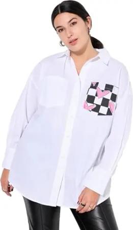 Damen große Größen Übergrößen Plus Size Hemdbluse, Boxy Shape, Karo-Hearts Rücken-Print schneeweiß 50+ 838409200-50+