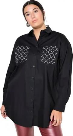 Damen große Größen Übergrößen Plus Size Hemdbluse, Oversized, Ziernieten-Taschen schwarz 50+ 835261100-50+