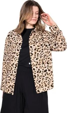 Damen große Größen Übergrößen Plus Size Hemdjacke, Boxy Shape, Leinenmix, Leo, gerundeter Saum beige 58+ 839602300-58+