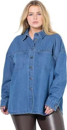 Damen große Größen Übergrößen Plus Size Jeanshemd, Oversized, Ziernieten Blue Denim 50+ 843739902-50+