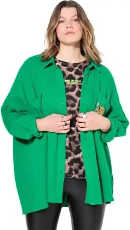 Damen große Größen Übergrößen Plus Size Musselin Bluse, Oversized, Tasche mit Leo-Patch smaragdgrün 50+ 839023459-50+