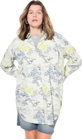 Damen große Größen Übergrößen Plus Size Oversize-Hemdbluse, Alloverprint, Langarm pastellgelb 42+ 839715403-42+