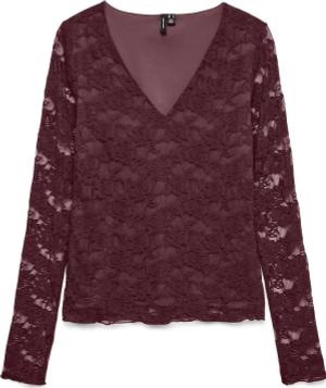 Damen Vmbecca High Neck Lace Top JRS Langarmbluse, Winetasting, XS