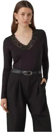Damen Vmmilla Sl Lace Tee Ga Noos Top, Black, L
