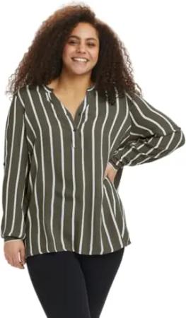 Damen Plus Size Women's Langen Ärmeln, V-Ausschnitt, regulärer Schnitt, gerundeter Saum Bluse, Forest Night, 48 DE/Groß