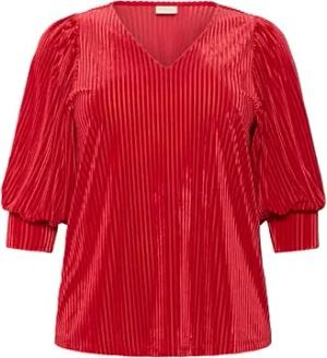 Damen Plus-Size Women's Blouse V-Neck Half-Length Sleeves Regular Fit Bluse, High Red CC, 3XL
