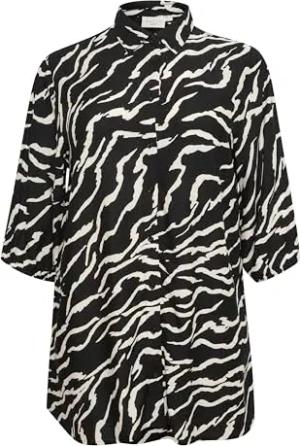 Langarm - Hemd KCsonna Damen Hemd Langarm Shirt Bluse Casual Print Langarmshirt Große Größen Black/Antique Zebra Print 44