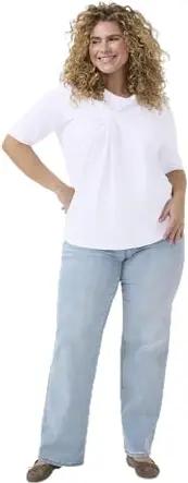 Damen Plus-Size Women's Blouse Short Batwing Sleeves Casual Fit Crew Neck Bluse, Celestial Blue, 44 DE/Groß