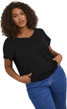 Kurzarm-Bluse KCami Bluse Große Größen Damen Kurzarm Rundhals Plus Size Shirt 48, Black Deep