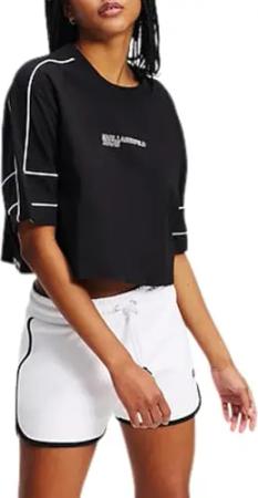 Relaxed Cropped Piping Tee, Women, Black, T-Shirt