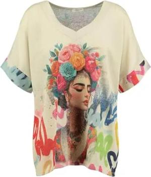 Damen Graffiti v-Neck T-Shirt, beige (1004), Large