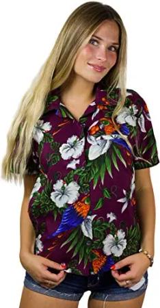 Funky Hawaii-Bluse-Hemd, Damen, Kurzarm, Parrot-Cockatoo, Violett, XS