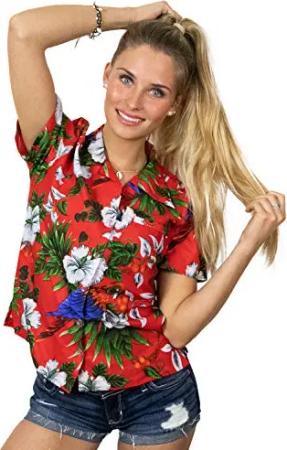 Funky Hawaii-Bluse-Hemd, Damen, Kurzarm, Parrot-Cockatoo, Rot, XL