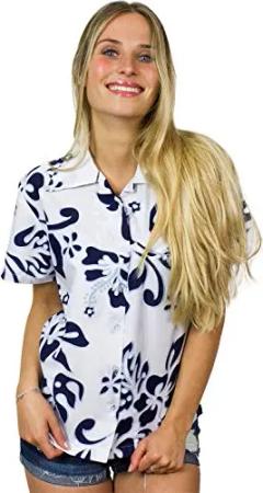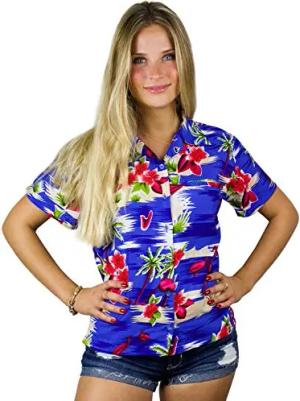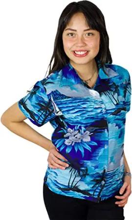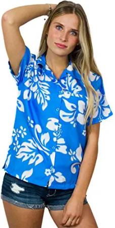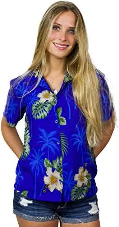 Funky Hawaii-Bluse-Hemd, Damen, Kurzarm, Beach, Mono-Blau, XS