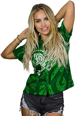 Funky Hawaii-Bluse-Hemd, Damen, Kurzarm, Maori-Chest, Grün, XL