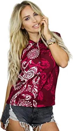 Funky Hawaii-Bluse-Hemd, Damen, Kurzarm, Cherry-Parrot, Maroon-Rot, S
