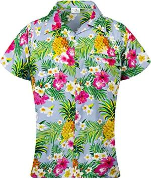 Funky-Hawaii-Bluse-Hemd, Damen, Kurzarm, Pineapple, Blau, L