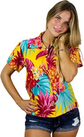 Funky-Hawaii-Bluse-Hemd, Damen, Kurzarm, Pineapple, Gelb, L