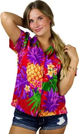 Funky-Hawaii-Bluse-Hemd, Damen, Kurzarm, Pineapple, Rot, S