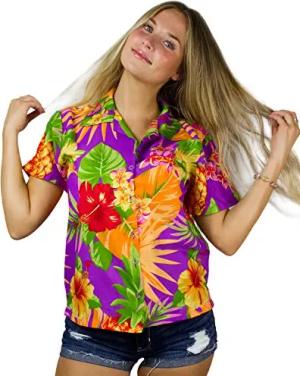 Funky-Hawaii-Bluse-Hemd, Damen, Kurzarm, Pineapple, Violett, L